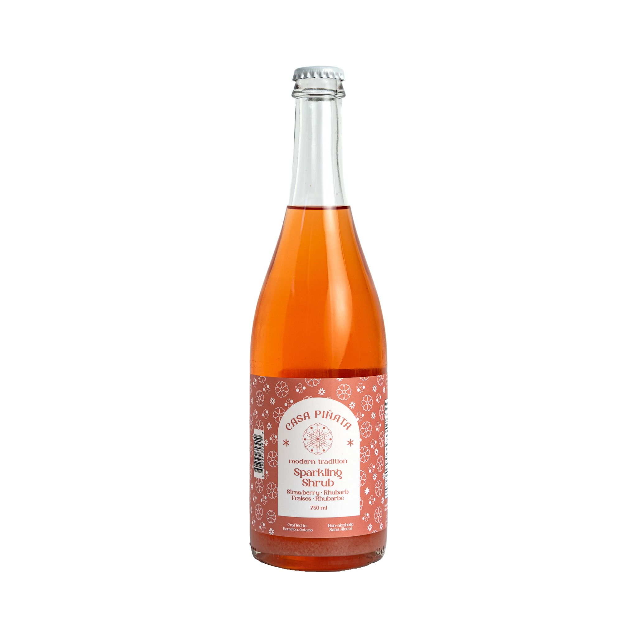 Ingredients: Sparkling water, Sugar (Strawberries, 100% Organic blue agave nectar), Rhubarb, Niagara Apple Cider Vinegar, Mint, Spices, Citric Acid.