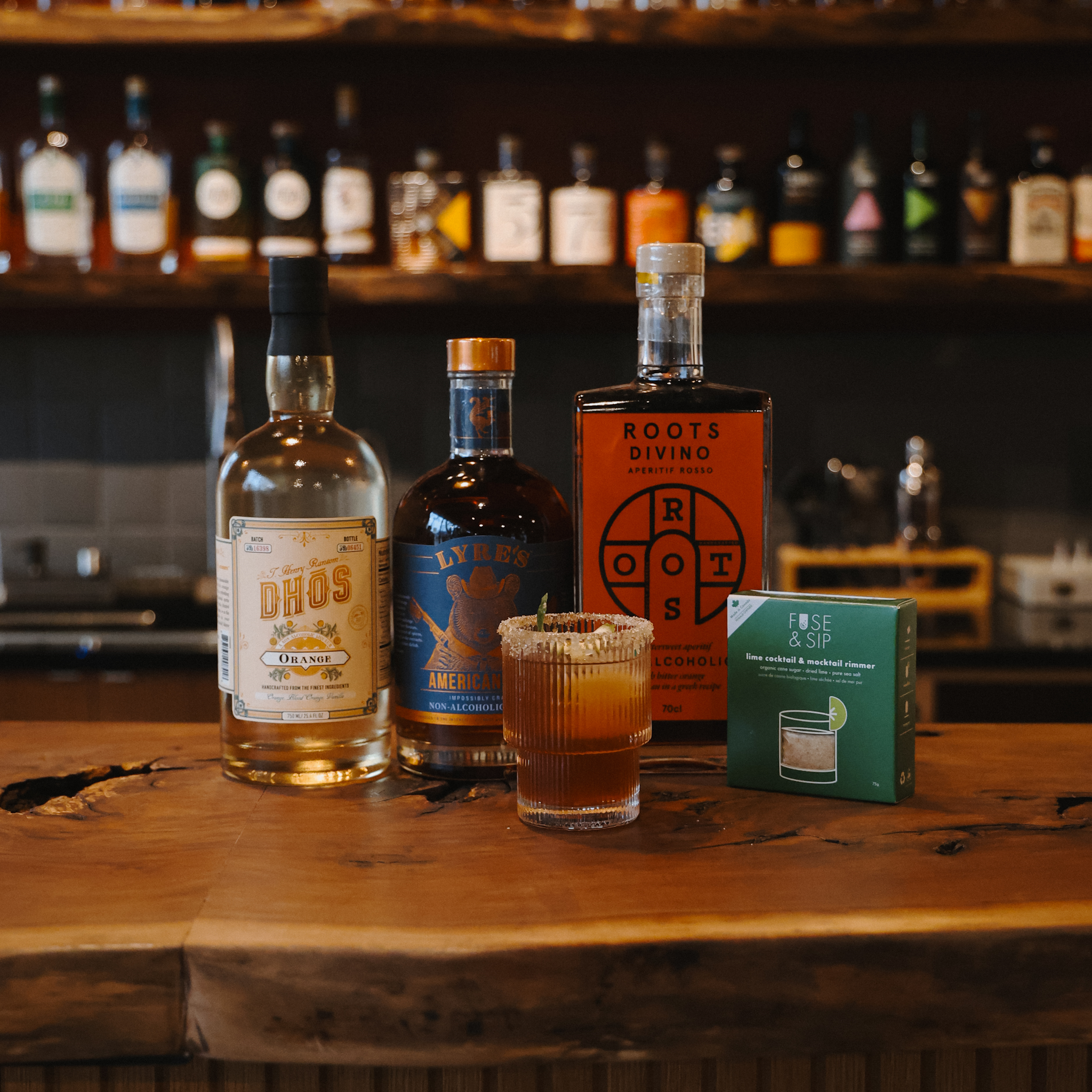 Featuring 1 oz of Lyre’s American Malt for a smooth, whiskey-inspired foundation, 1 oz of Roots Divino Rosso adds a rich, herbal depth. 1/2 oz of Dhos Orange provides a bright, citrusy sweetness, balanced by the tangy zing of 1/2 oz of fresh lime juice.