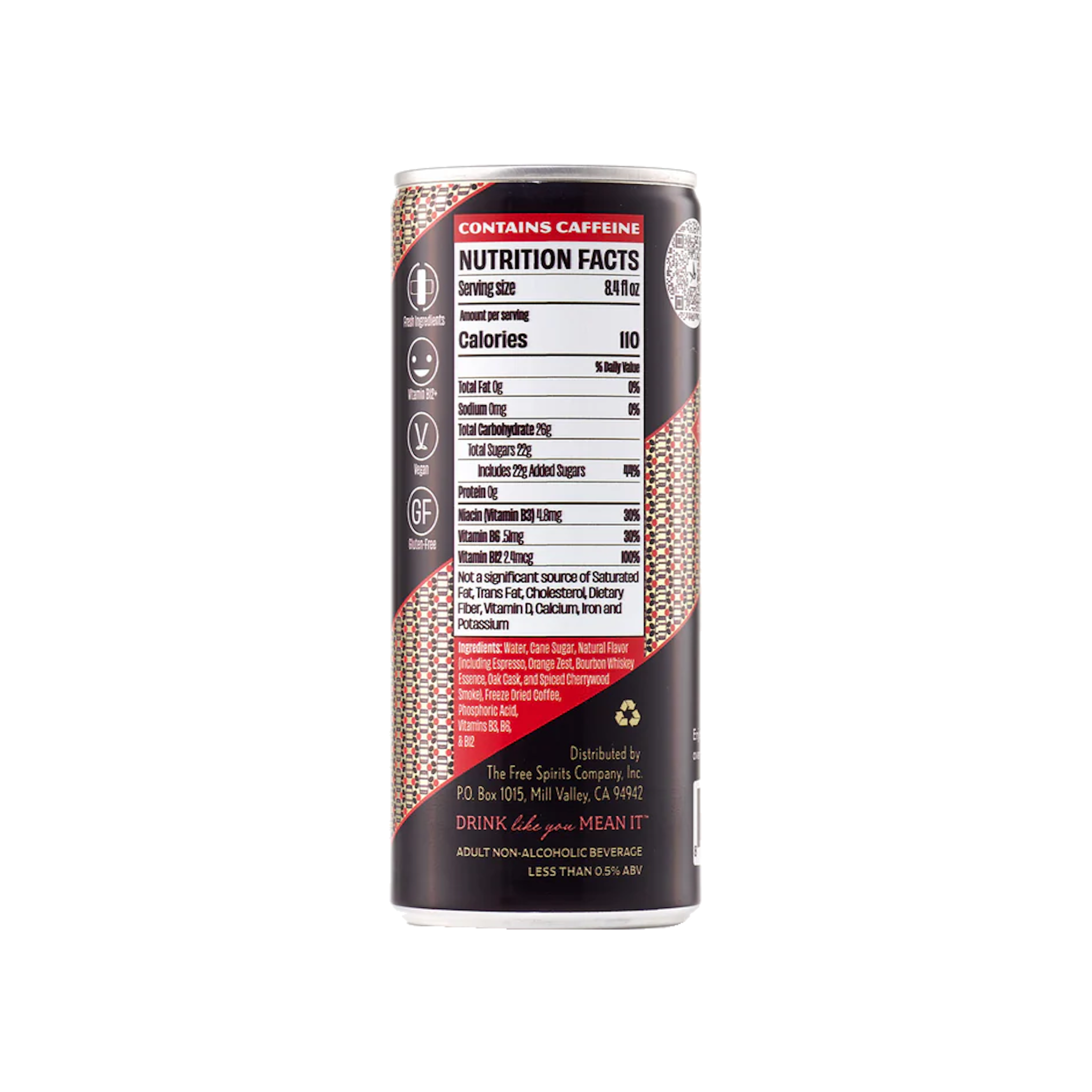 With a kick of B-Vitamins (B3, B6, & B12), it's crafted with real espresso, natural ingredients, and our award-winning non‑alcoholic whiskey alternative: The Spirit of Bourbon®. Enjoy it cold straight out of the can or pour over ice and garnish with an orange twist.