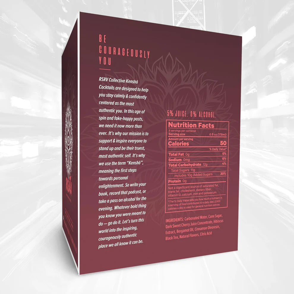Welcome to Rosata — a luxurious and sophisticated non-alcoholic Kenshō Cocktail. At first you'll notice bright cherry notes wafting from the glass while small carbonated bubbles shoot a hint of sharp ginger into the bouquet.